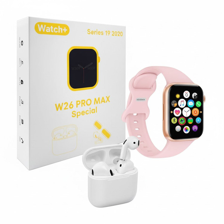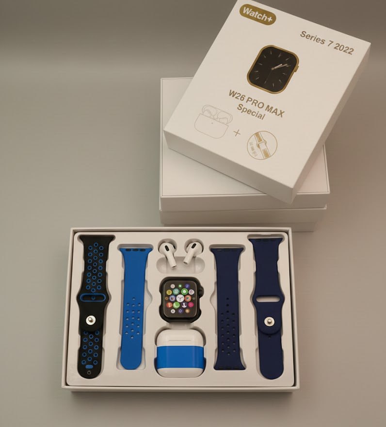 W26 Pro max smartwatch with AirPod, 2 straps