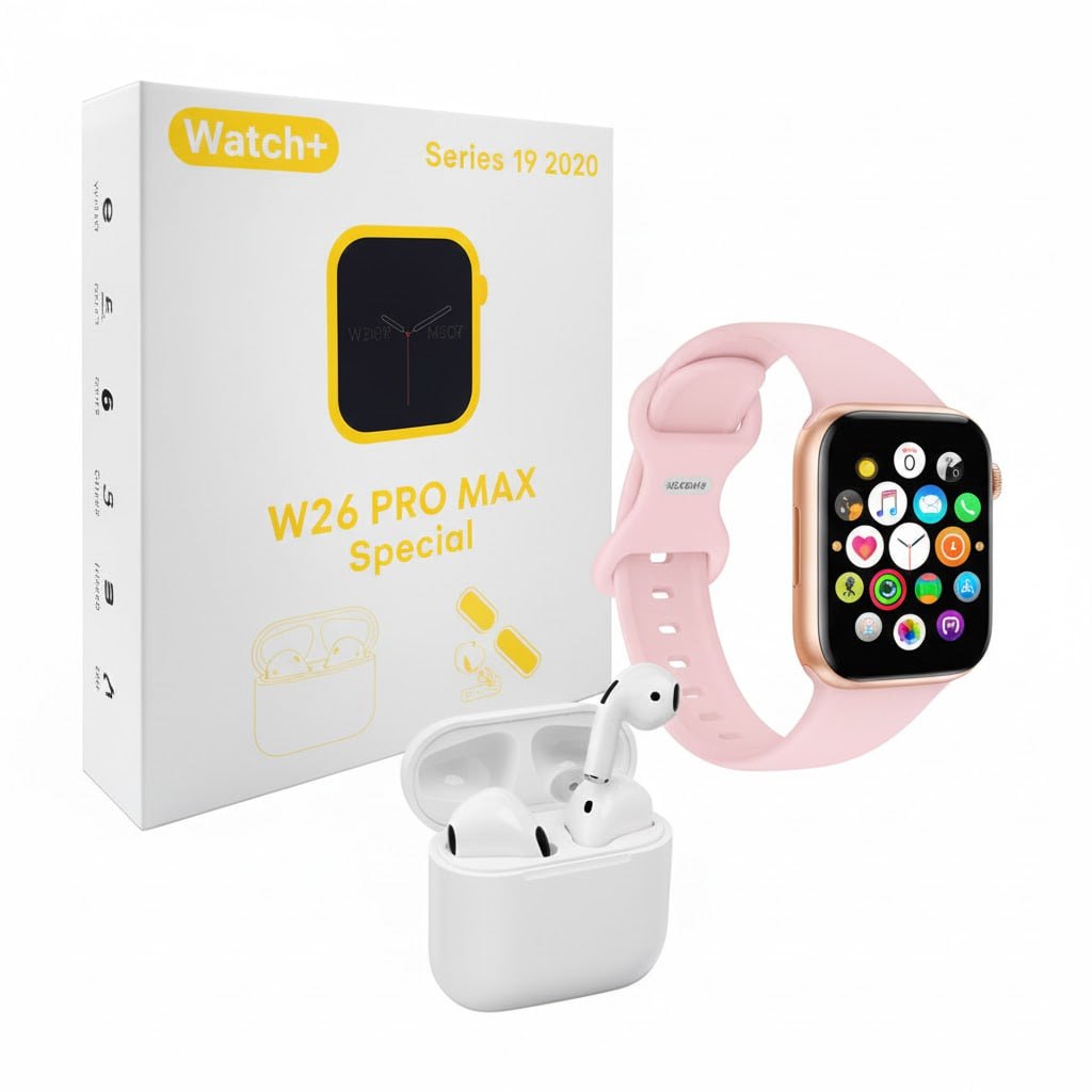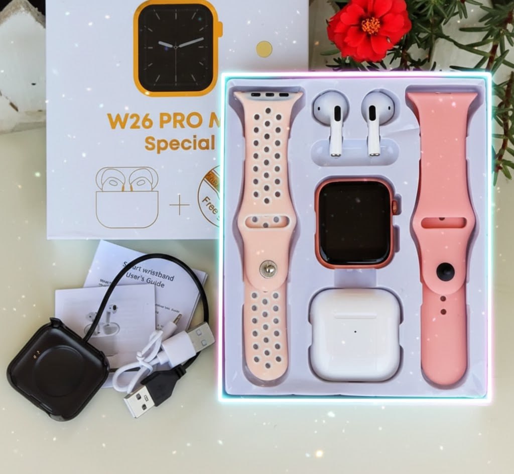 ساعت هوشمند W26 Pro max همراه با ایرپاد و 2 جفت بند