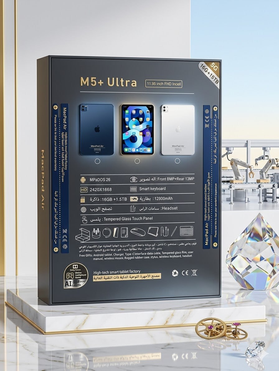 آیپد 12 اینچی MacPad Air مدل M5 Ultra Plus حافظه 1.5 ترابایت و رم 16